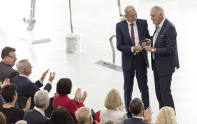 Vor der Übergabe der Wirtschaftsmedaille beleuchtete Riegger „die Bilderbuchkarriere“ von Rolf Geisel, der 1972 am Boysen-Stammsitz in Altensteig als Lehrling angefangen hat und seit nunmehr über 33 Jahren als Geschäftsführer des Abgastechnikspezialisten verantwortlich zeichnet. „Als Motor dieses Weltunternehmens wollen Sie auch andere an diesem Erfolg teilhaben lassen“, verwies der Landrat auf das vielfältige Engagement, das Boysen in Person von Rolf Geisel „für den Zusammenhalt der Gesellschaft im ländlichen Raum erbringt.“ Als Besonderheit erwähnte der Landrat, dass Rolf Geisel die erste Unternehmerpersönlichkeit im Landkreis Calw ist, die diese Auszeichnung erhält.